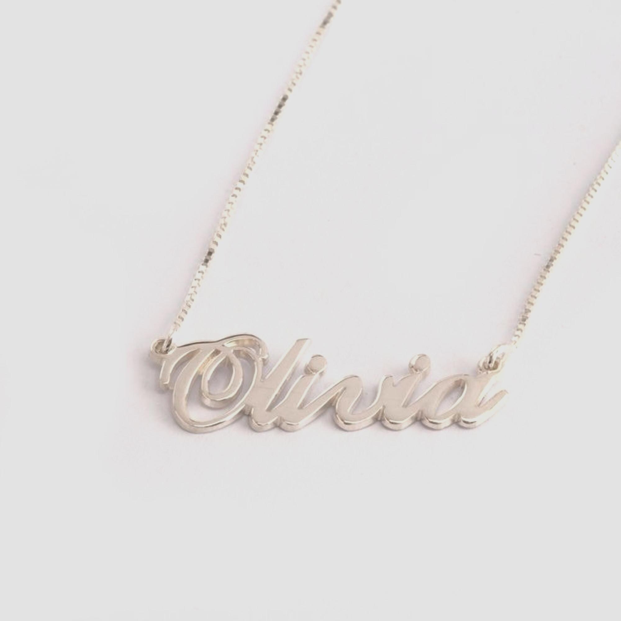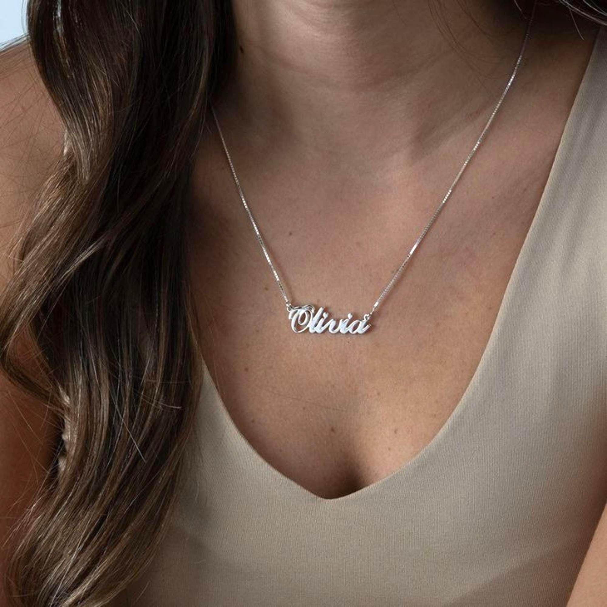 Available in 925 sterling silver or a 24K gold plated finish, this personalized nameplate necklace adds a touch of sophistication to any outfit.