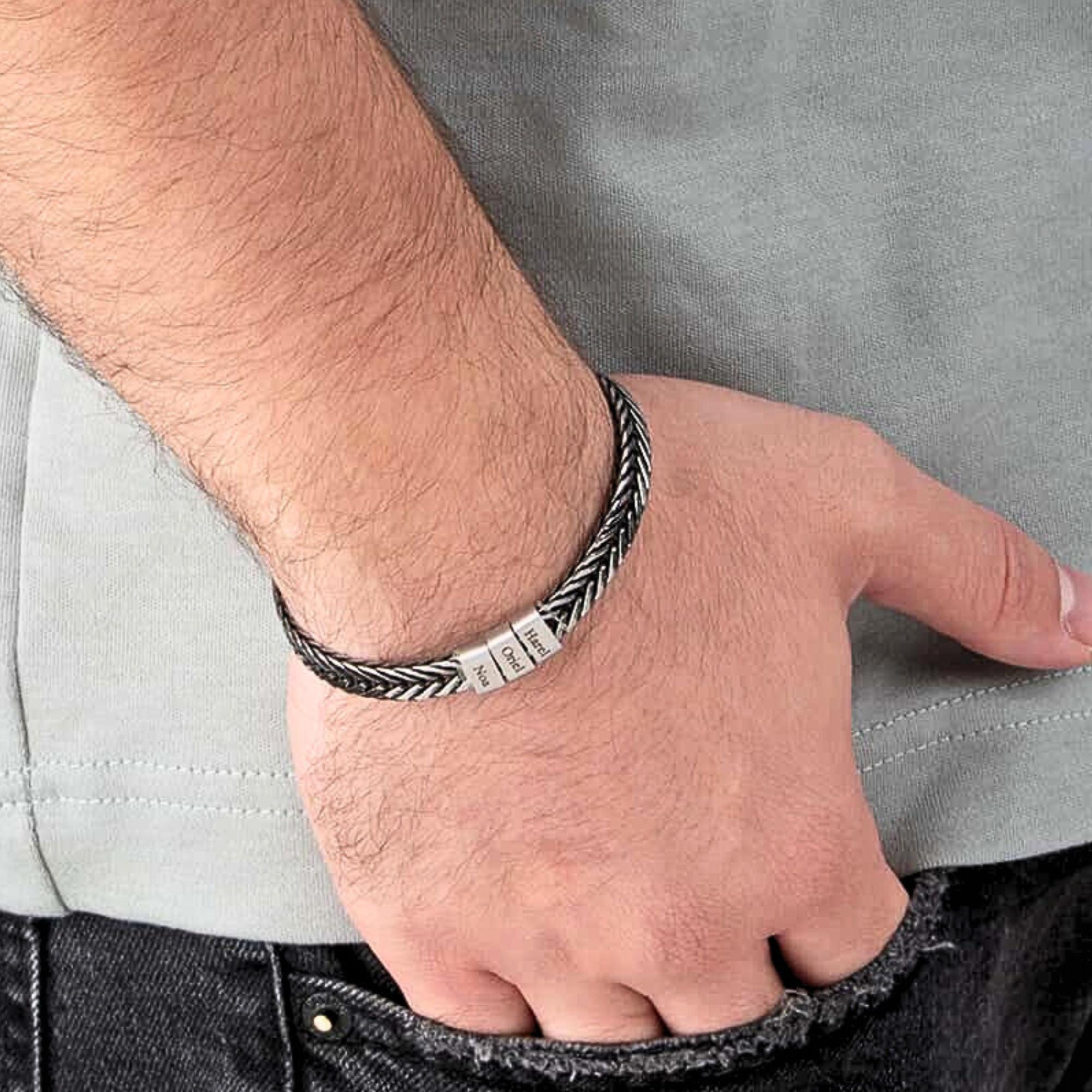 This sleek and masculine bracelet is handcrafted from 925 Sterling Silver, offering a modern yet sentimental way to keep his loved ones close daily.