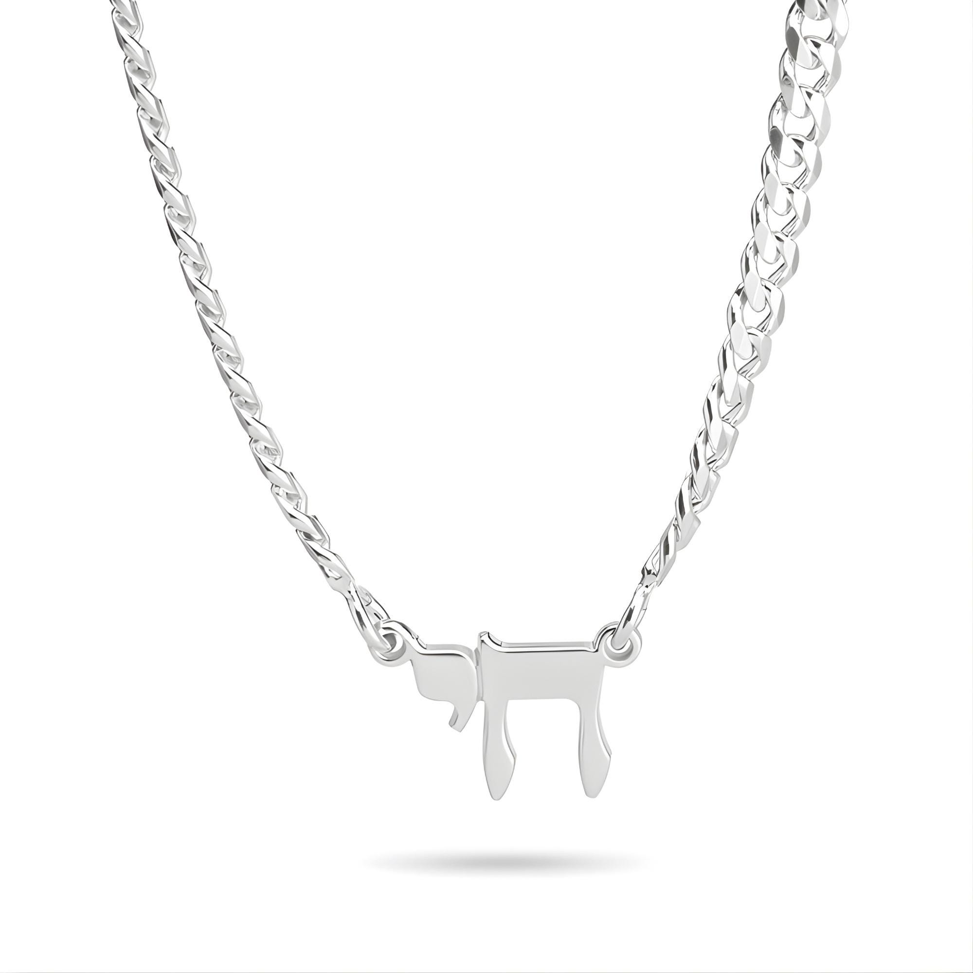This Hebrew Chai necklace is crafted from solid 925 sterling silver and paired with a classic Cuban link chain for a clean, strong look.