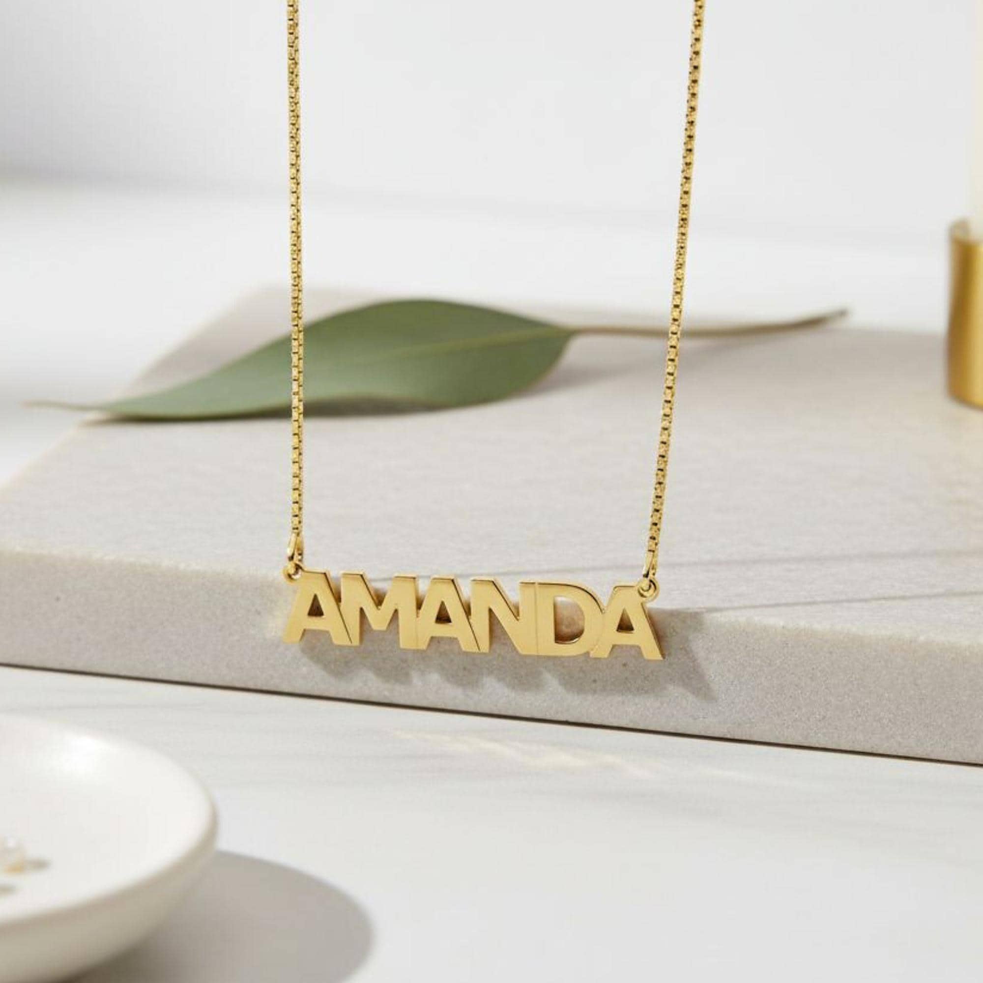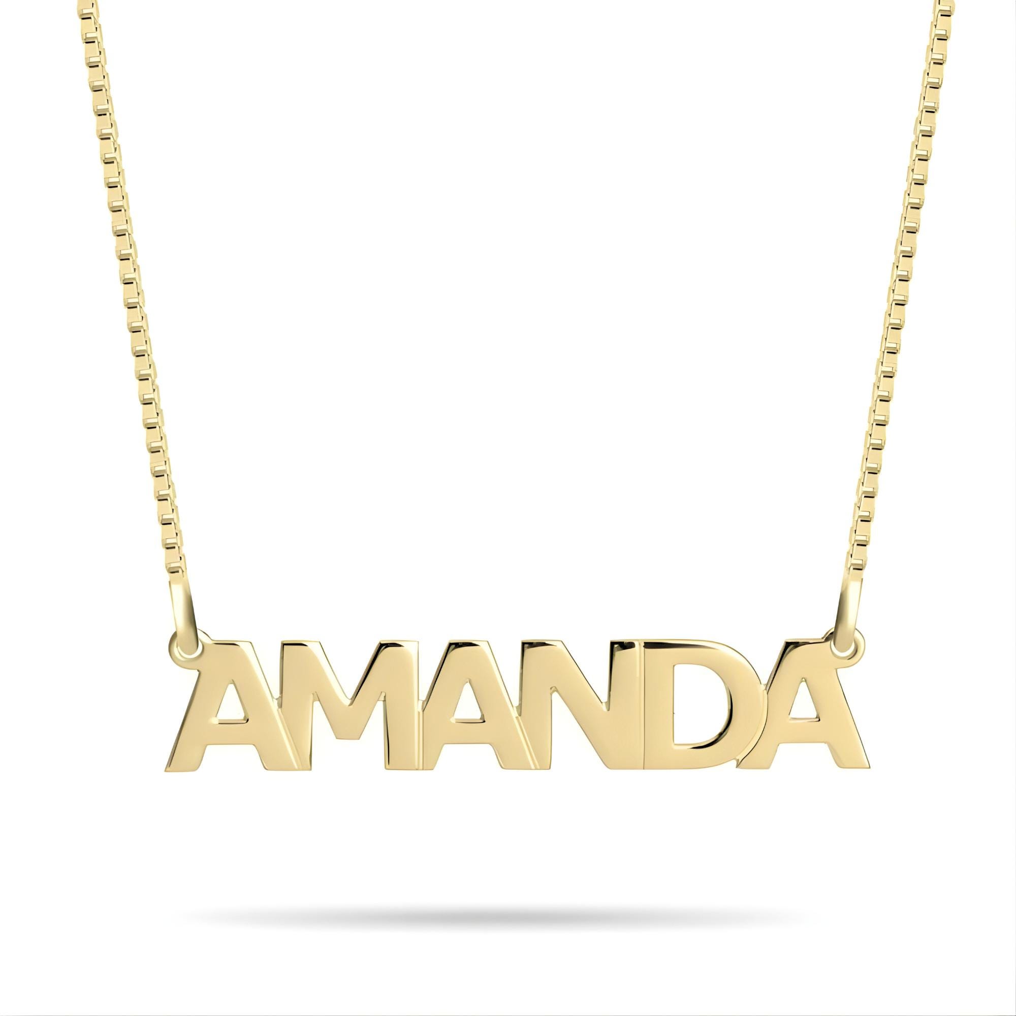 This custom Bold Name Necklace is a modern twist on personalized jewelry, featuring clean capital letters that reflect strength, identity, and confidence. Handcrafted in your choice of solid 925 Sterling Silver, 24K Gold Plated, or Rose Gold, it’s both powerful and elegant—just like the woman wearing it.