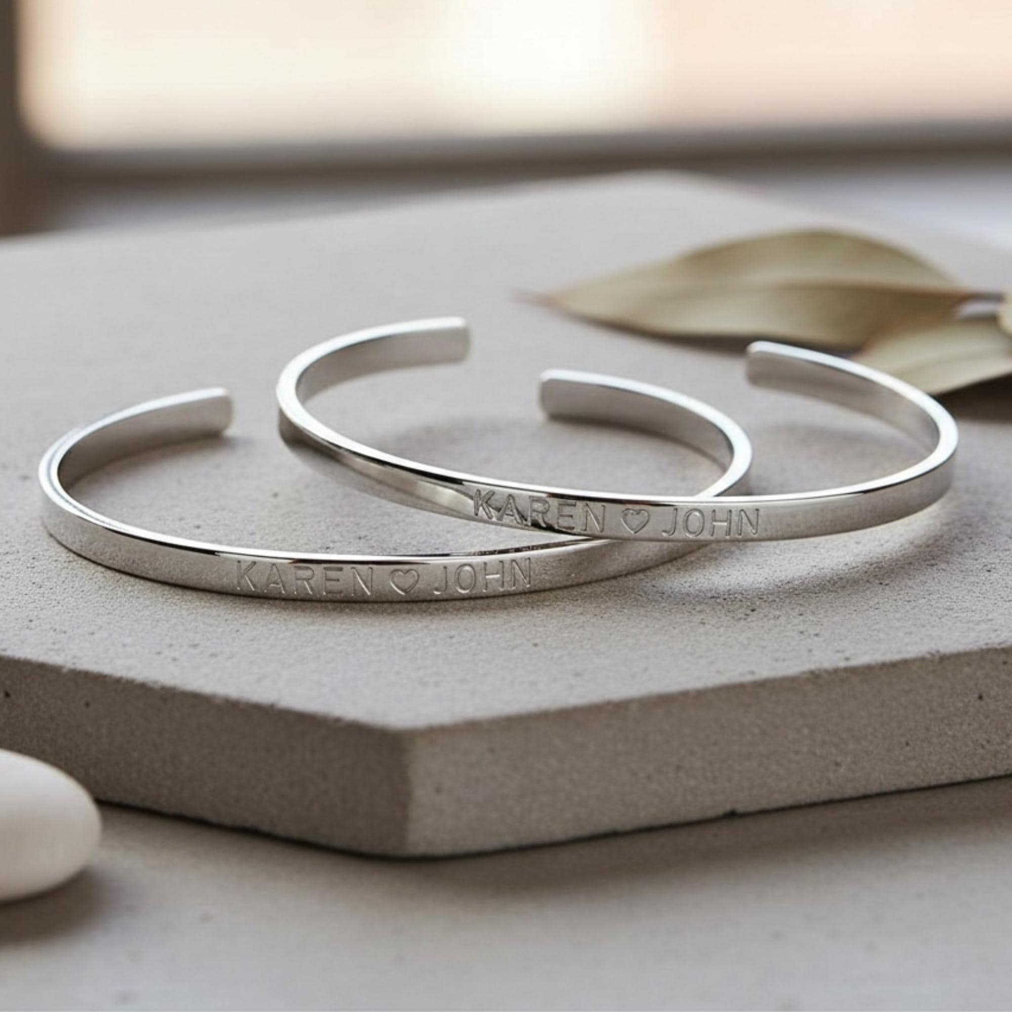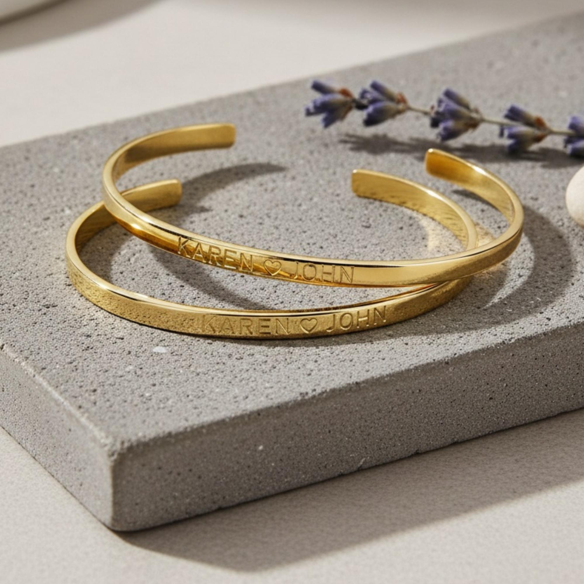 Celebrate your love with this personalized couple cuff bracelet set, handcrafted in solid 925 sterling silver or 24K gold-plated. Designed for comfort and style, each cuff can be engraved with names, initials or a special date, making this a meaningful keepsake you’ll both cherish.