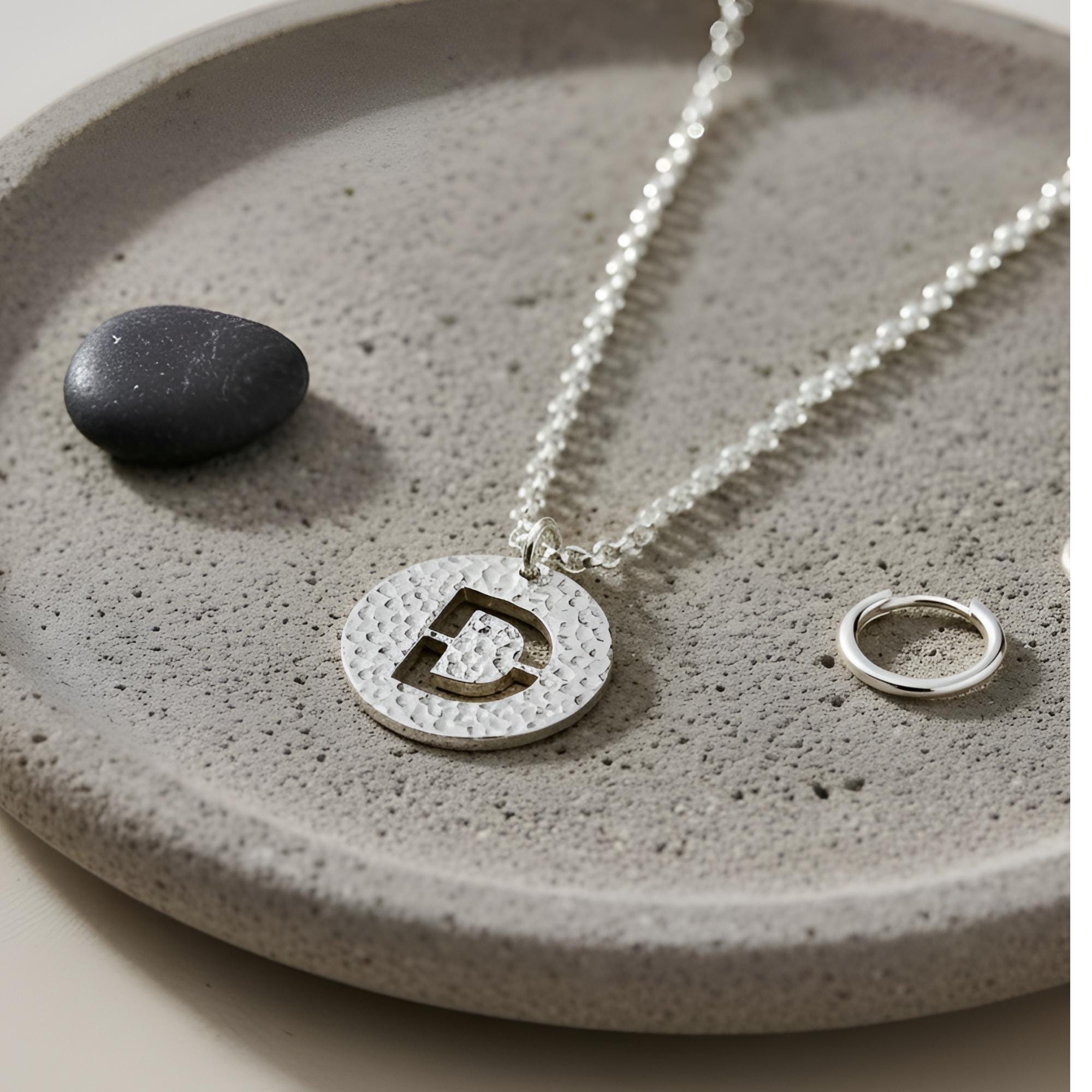 Hammered Initial Disc Necklace – Sterling Silver or Gold-Plated Personalized Jewelry Gift