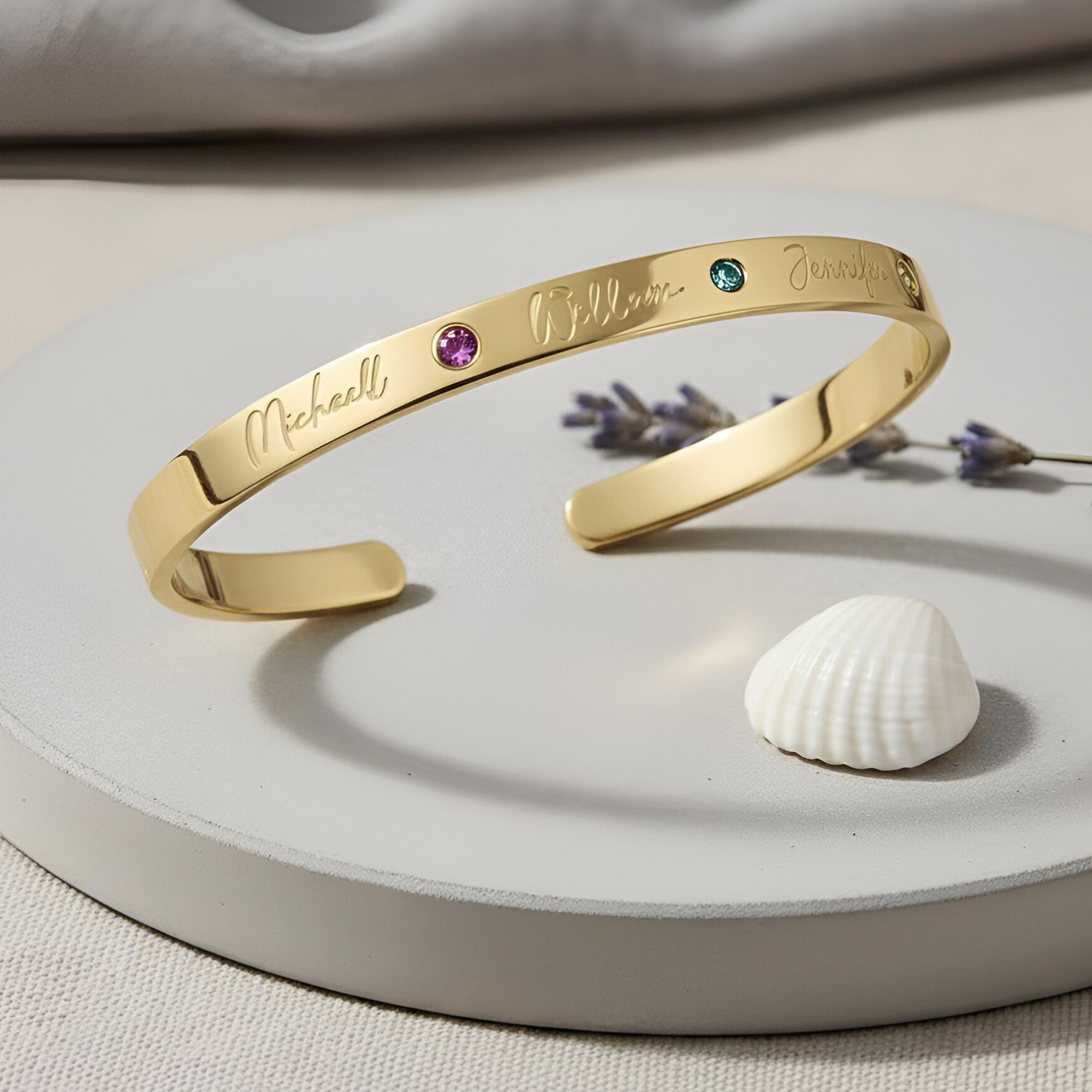 Designed with an open cuff style for comfort and versatility, this personalized bracelet is a thoughtful gift for Mother’s Day, Christmas, birthdays, or as a treasured gift for Grandma.