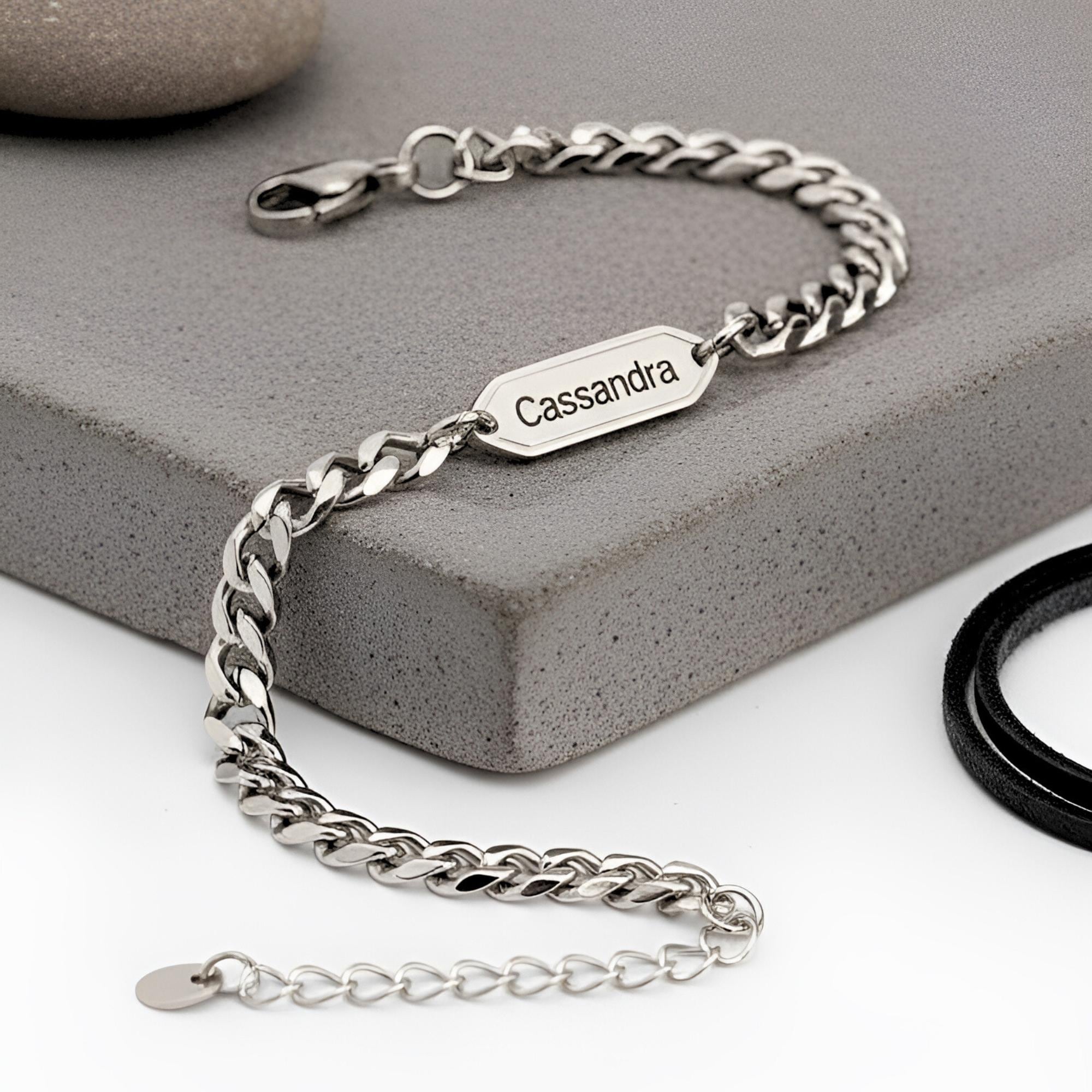 Perfect as a Fatherâs Day gift, anniversary keepsake, or everyday accessory, this personalized menâs bracelet can be customized with a name, initials, or meaningful dateâturning it into a timeless treasure heâll wear with pride.