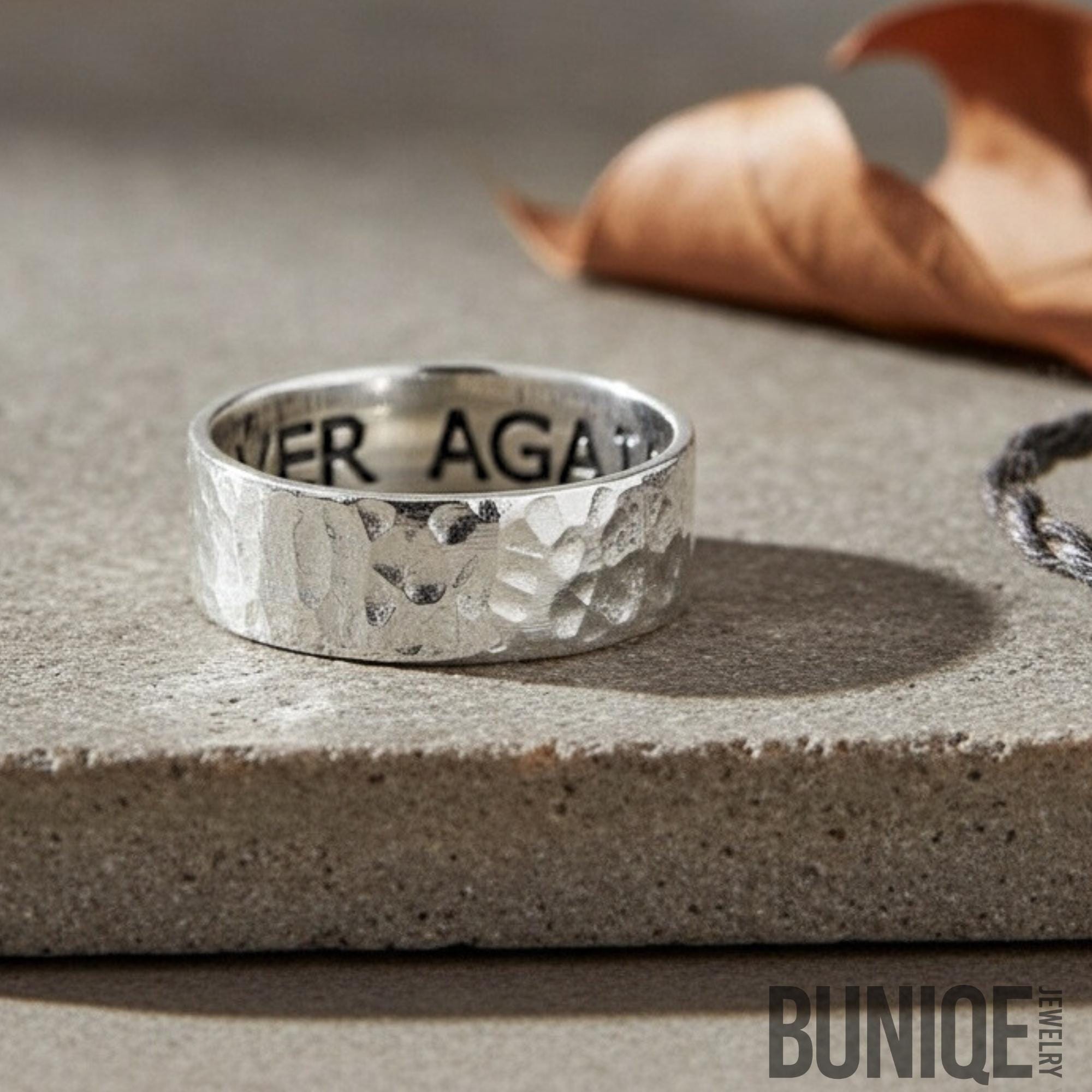 This hidden message hammered ring is handcrafted in Jerusalem from solid 925 sterling silver and finished with a raw, timeless texture. Inside, your personal engraving is hidden from the world and kept just for you — a verse, a blessing, a name or a private message with deep meaning.