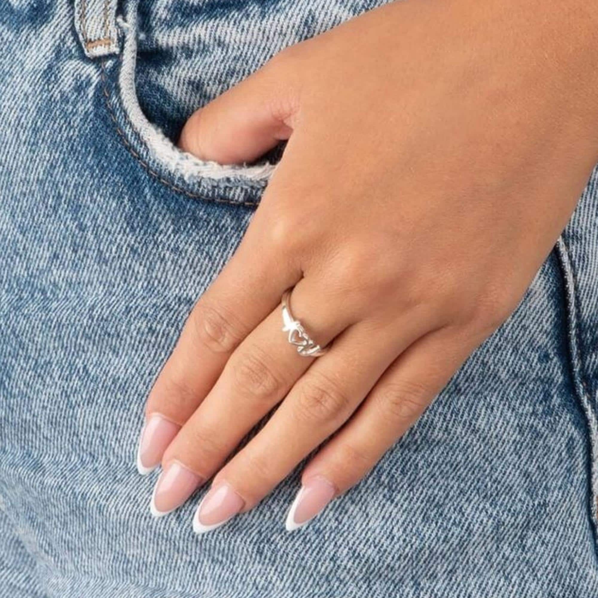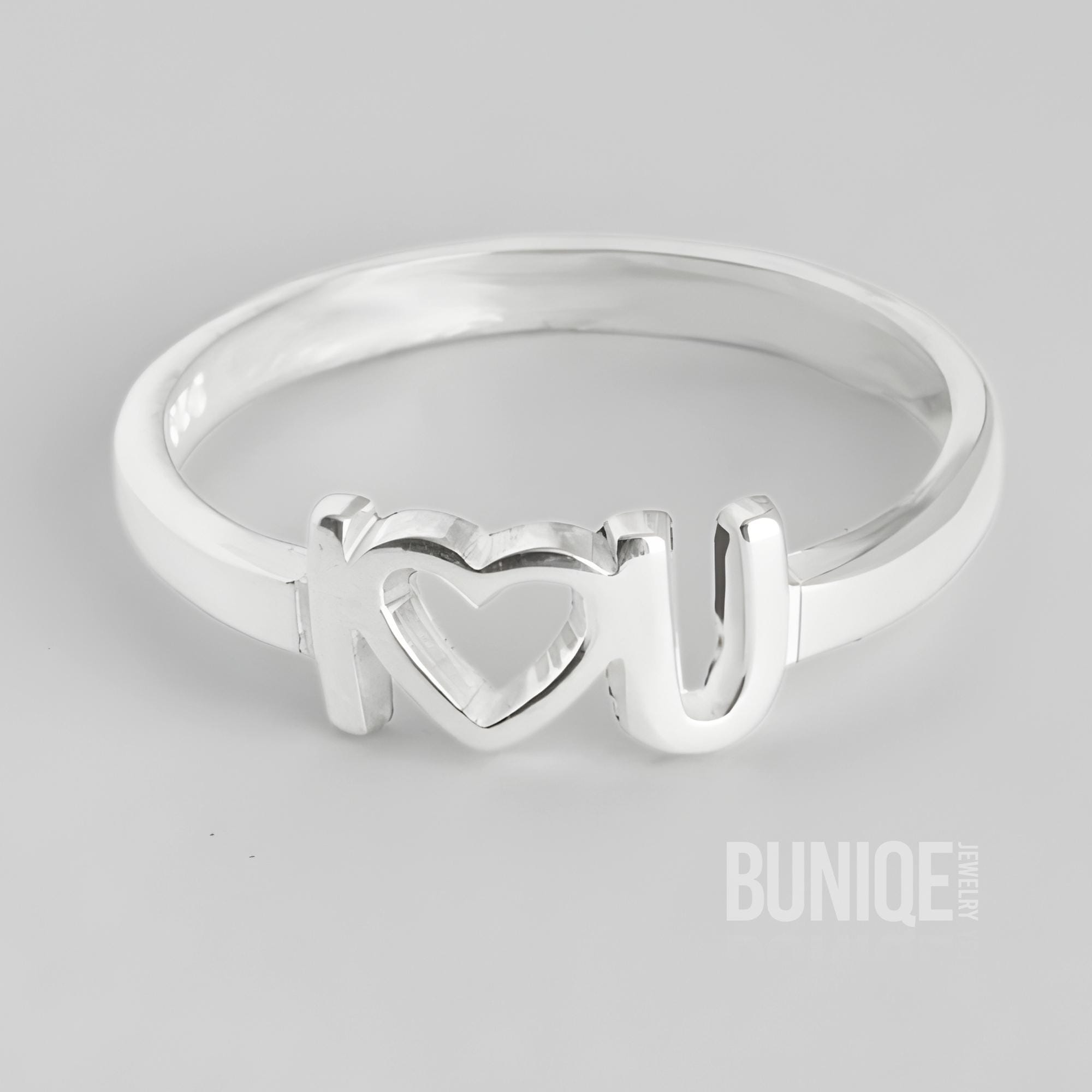 Made from high-quality 925 Solid Silver, this romantic ring features two engraved initials separated by a delicate open heart, symbolizing the bond between you and your loved one.