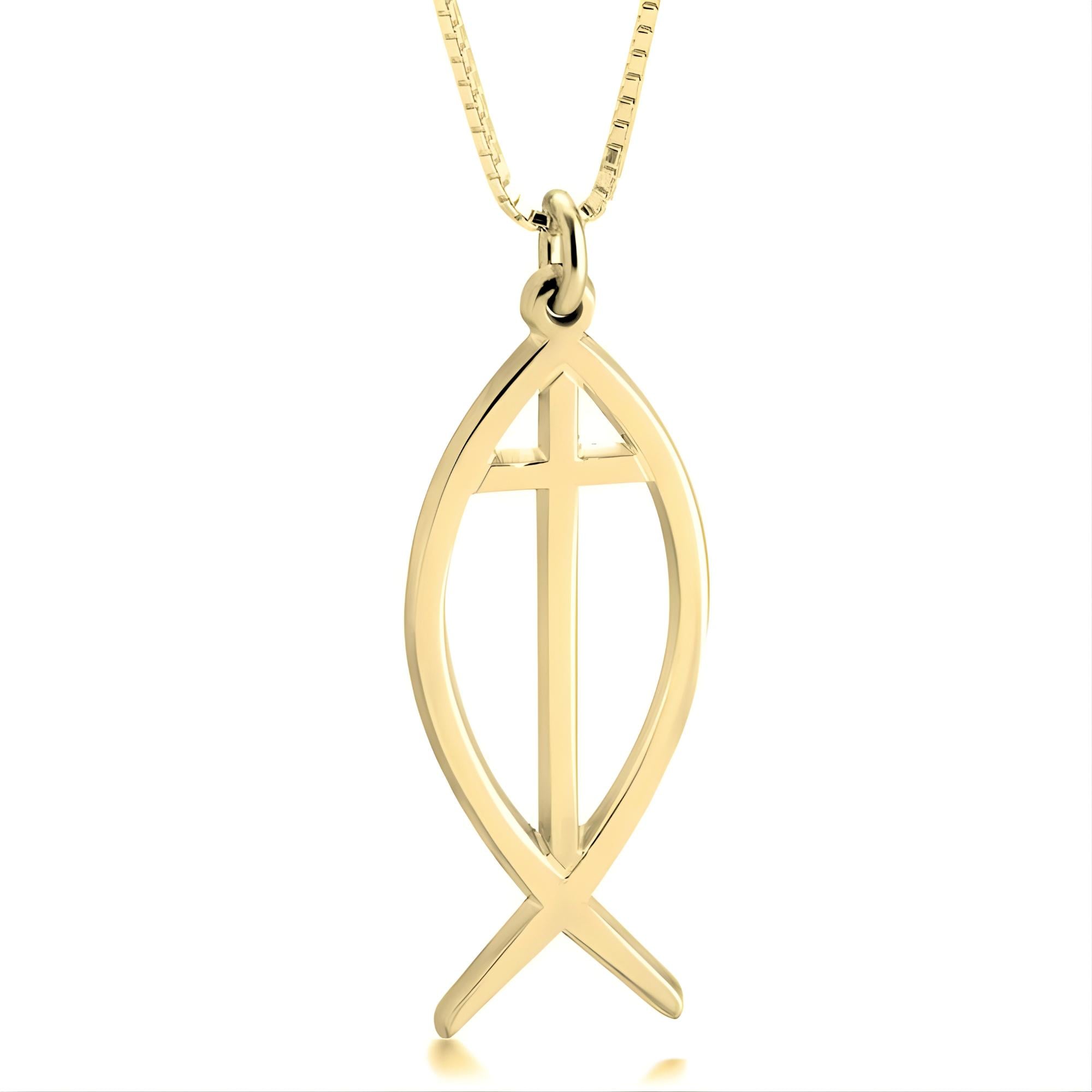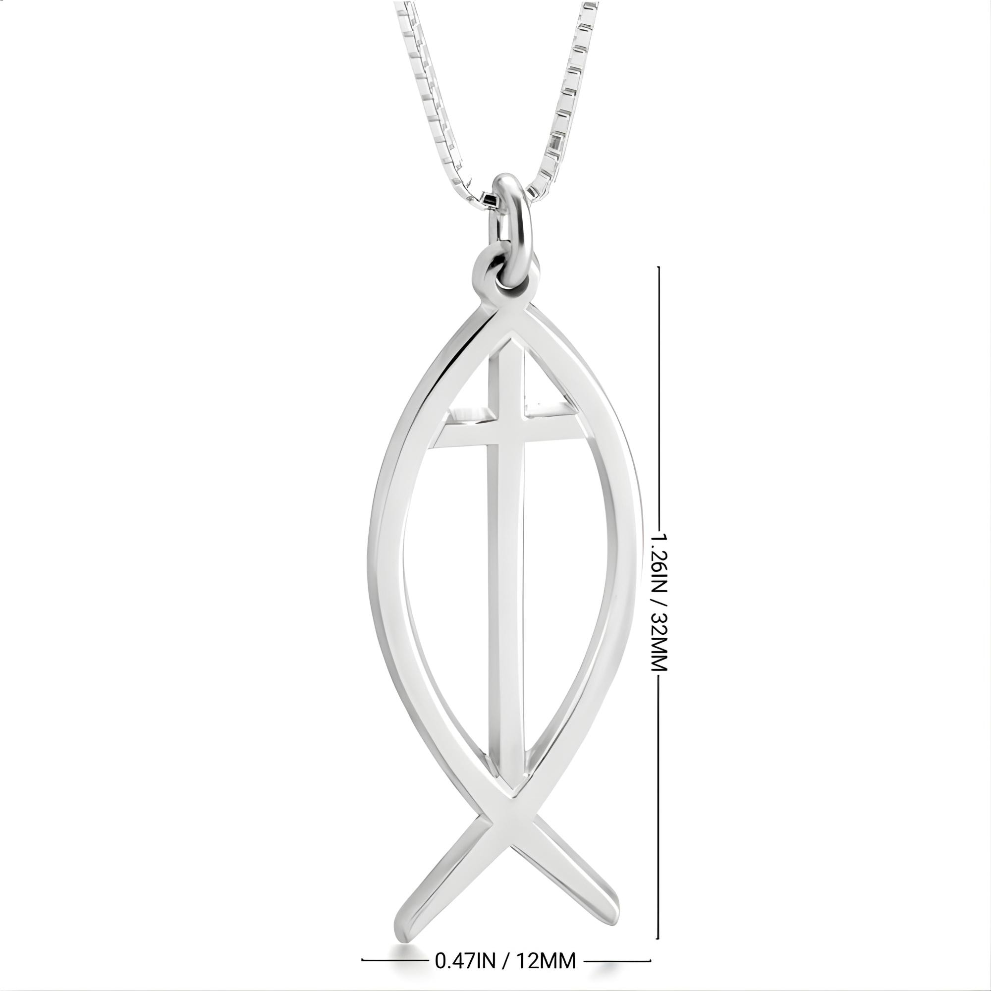 ✝️ Cross Fish Ichthus Necklace, Sterling Silver or Gold Filled – Christian Jewelry Gift for Him or Her