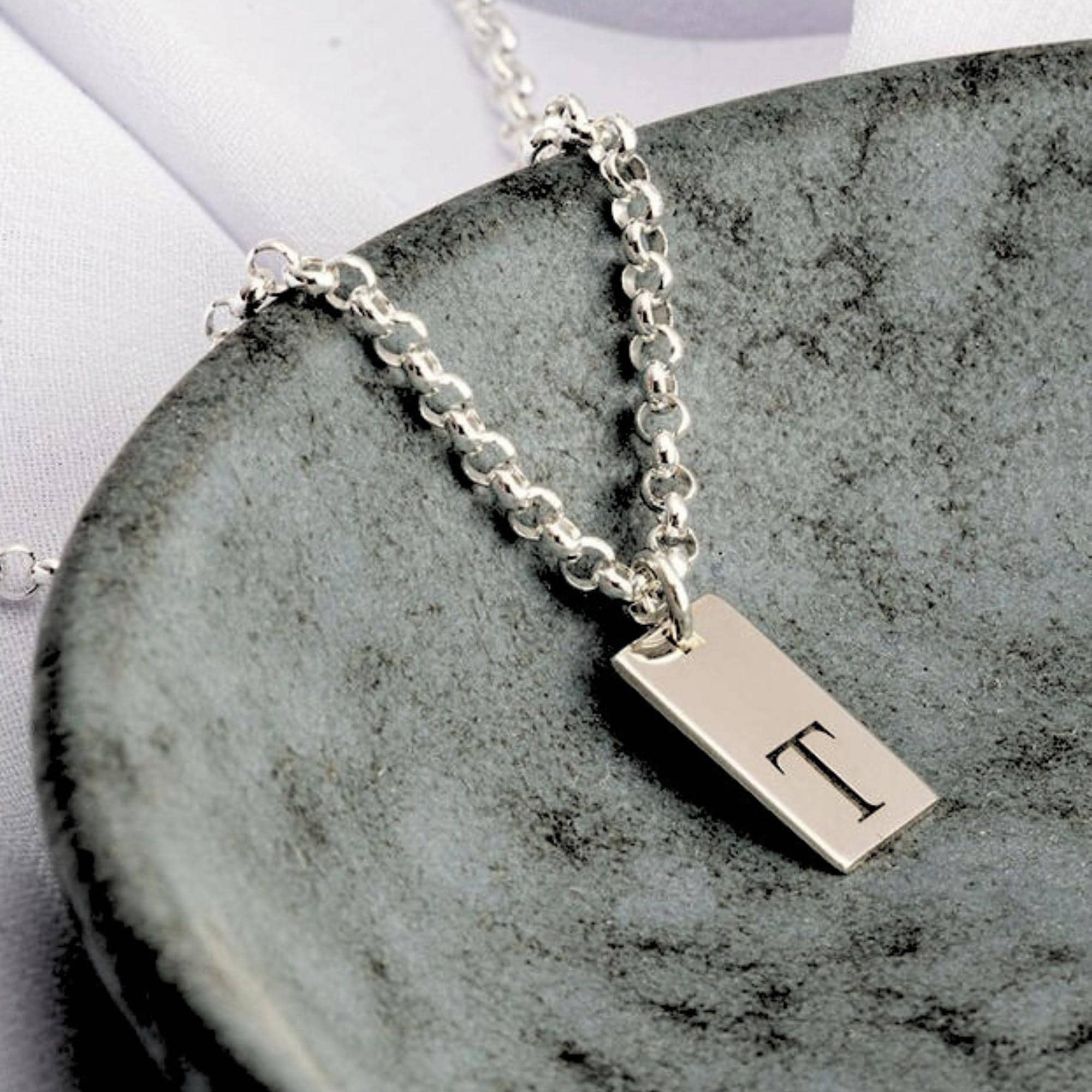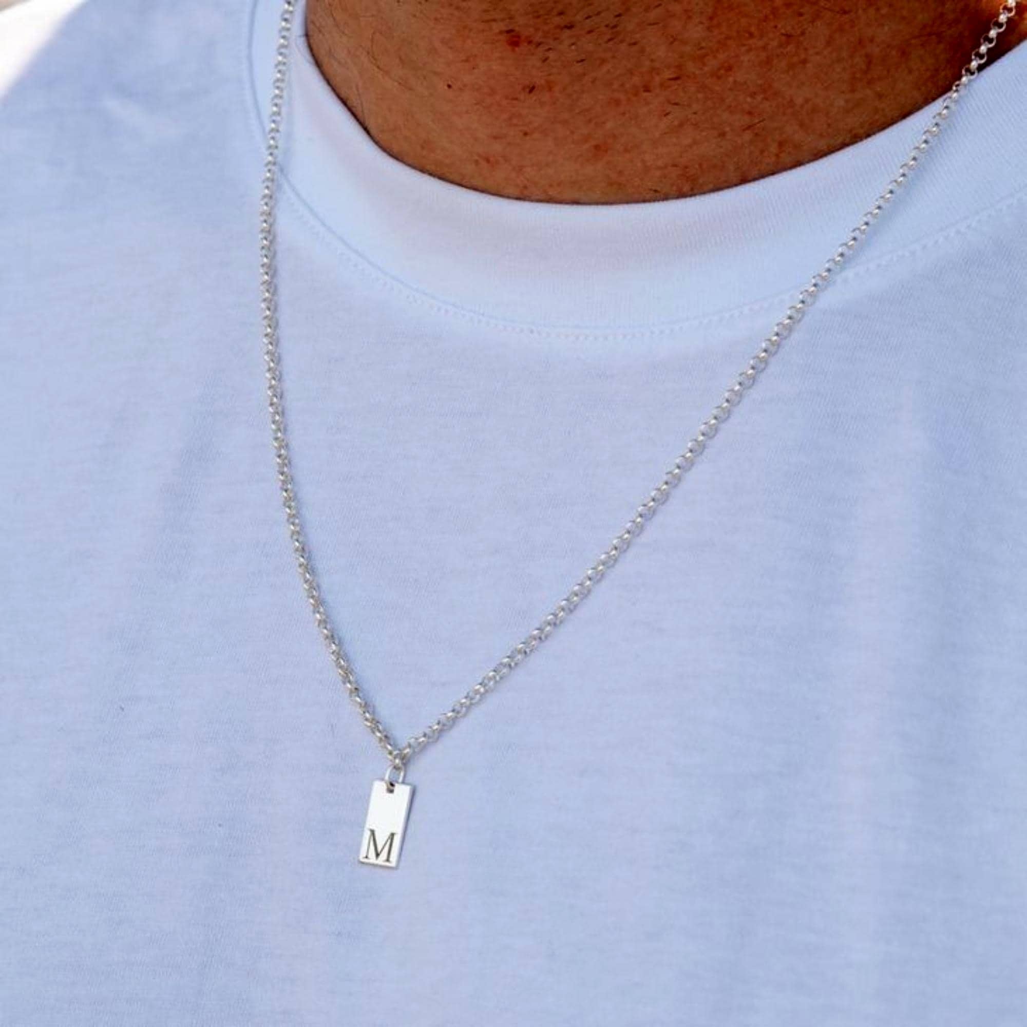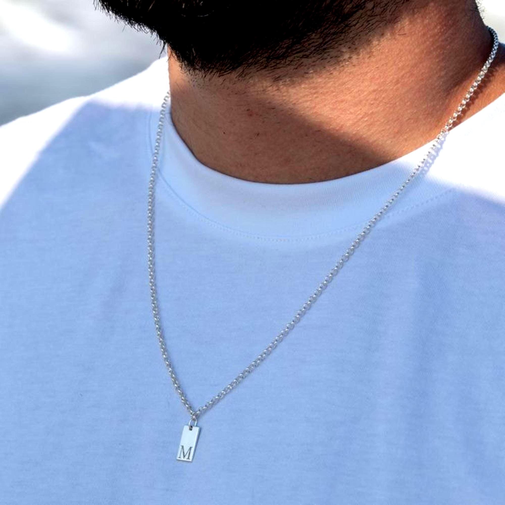 💎 Men’s Initial Tiny Tag Necklace made from Solid Sterling Silver - Minimalist Jewelry Gift for the Man in your life!