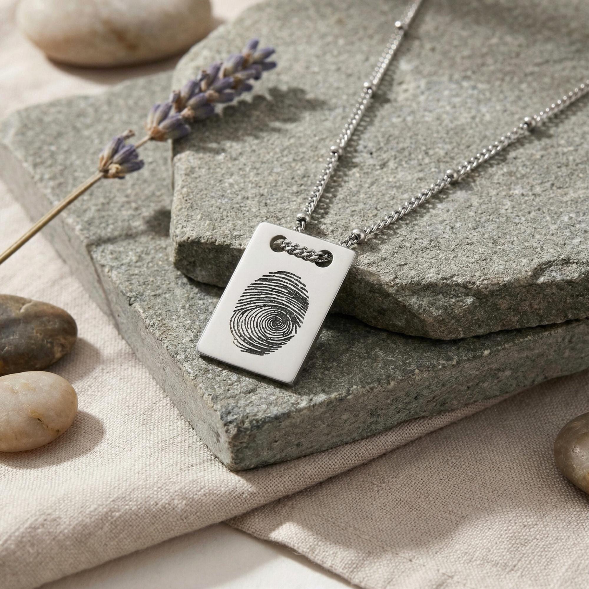This personalized fingerprint tag necklace is more than jewelry — it’s a meaningful keepsake that captures the unique touch of someone you love.