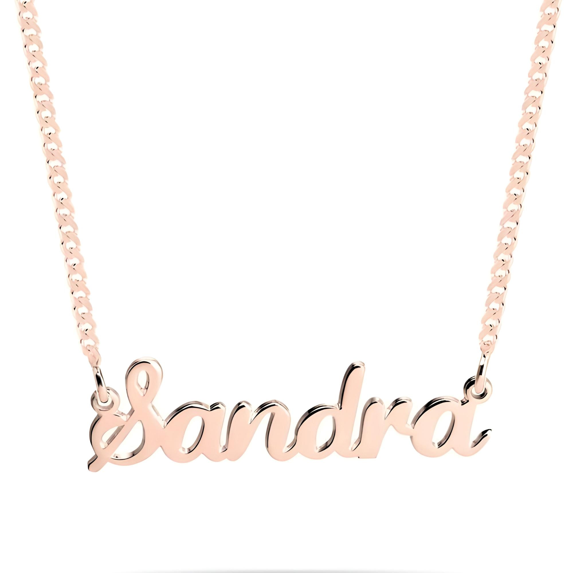 Your custom name or word is cut in a flowing script and paired with a bold Cuban link chain for the perfect balance between elegance and edge.