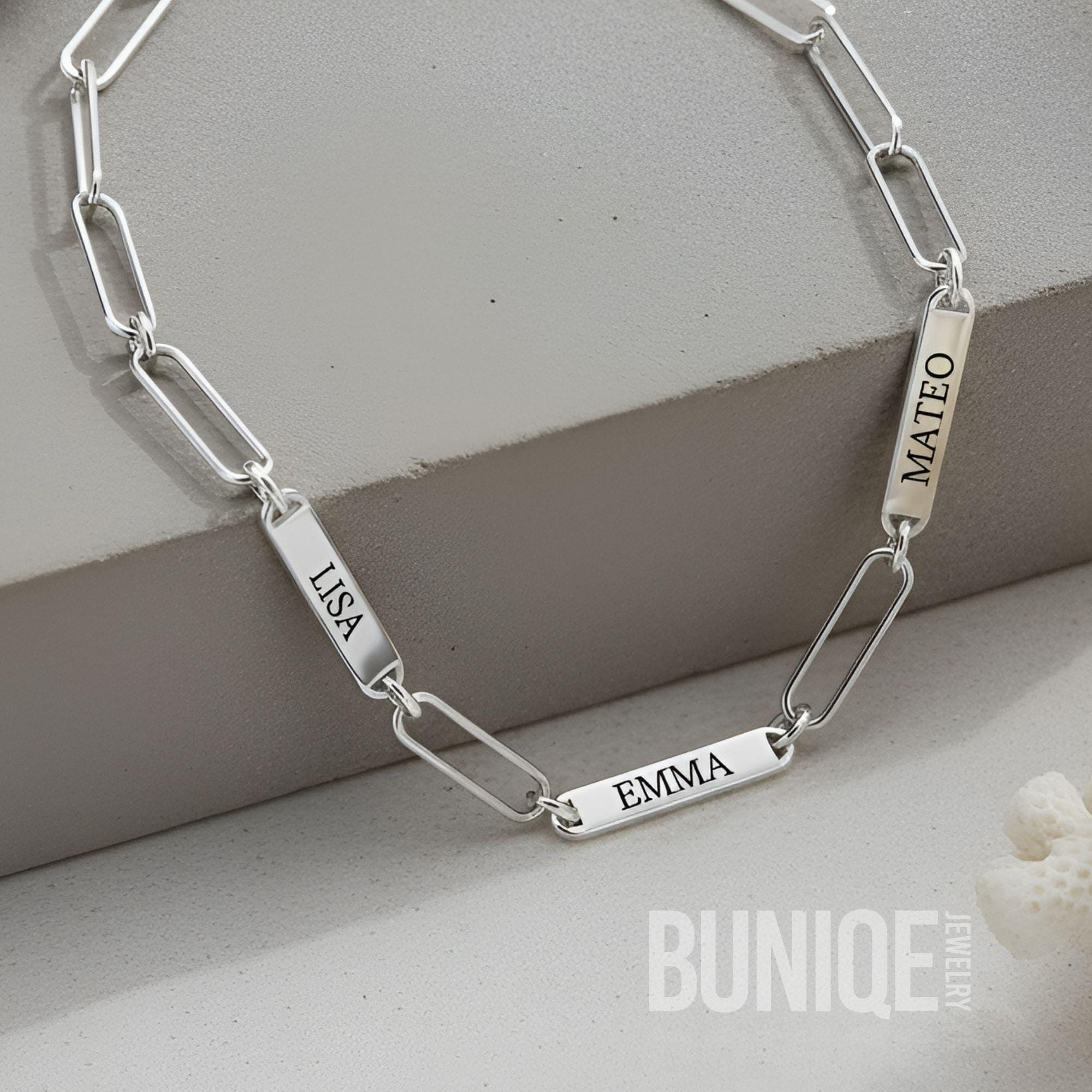 ❤️ Celebrate family and cherish precious memories with this Paperclip Mother Necklace featuring custom-engraved bars with your kids' names.