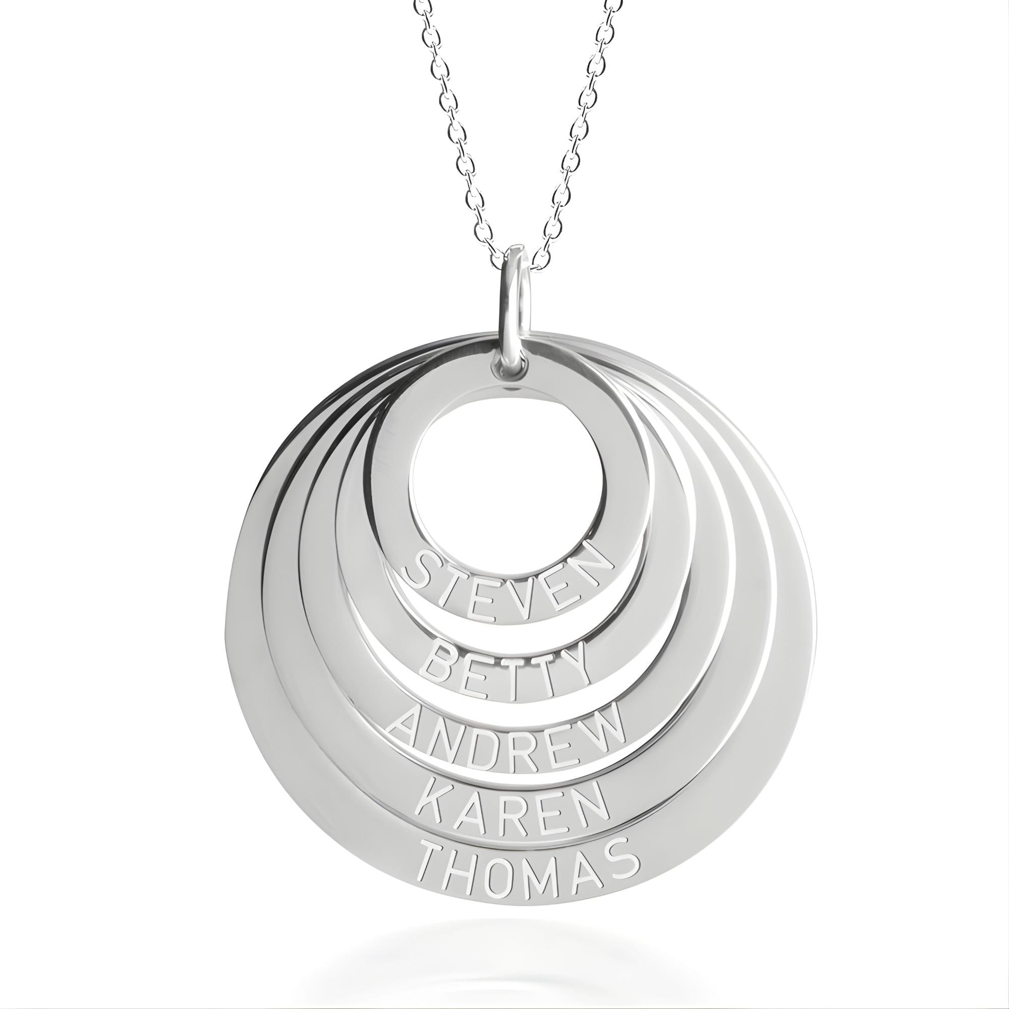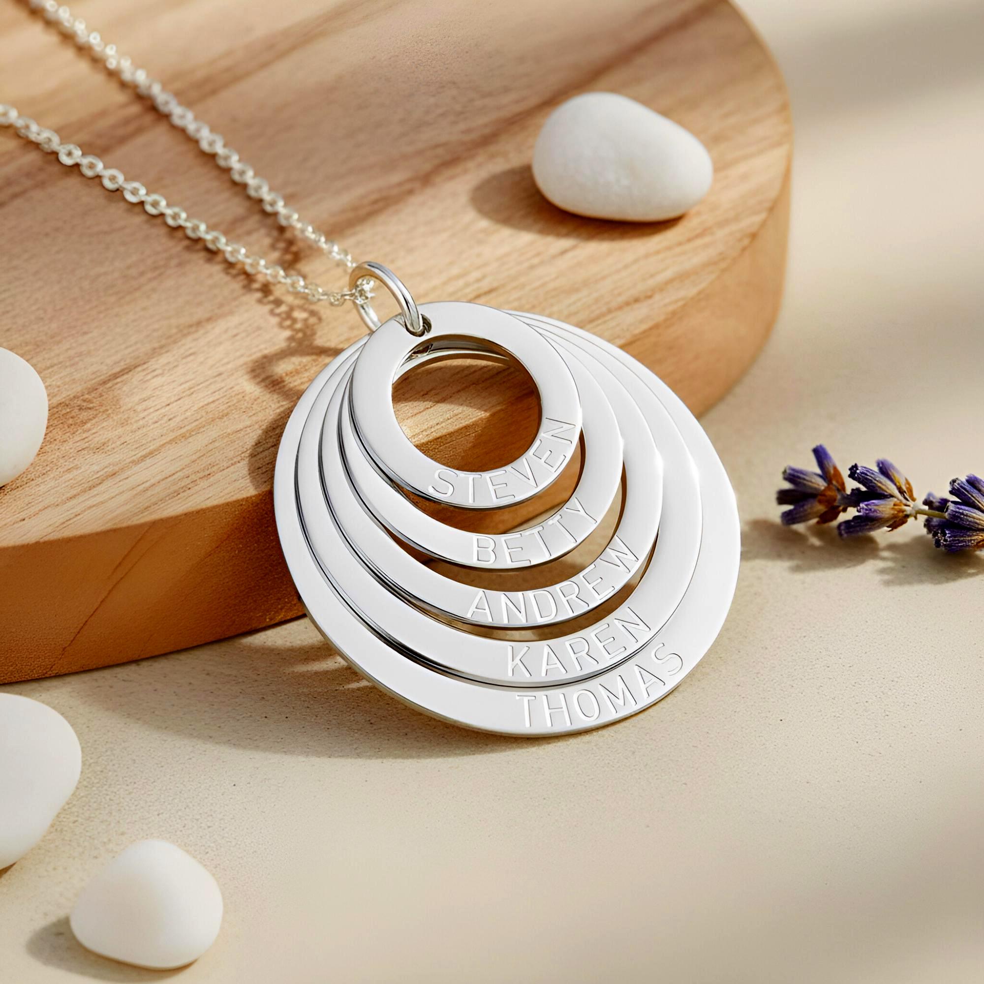 💎 Mom Necklace with Kids Names – Personalized Multi Circle Pendant Necklace, Sterling Silver Gift for Mother or Grandma!