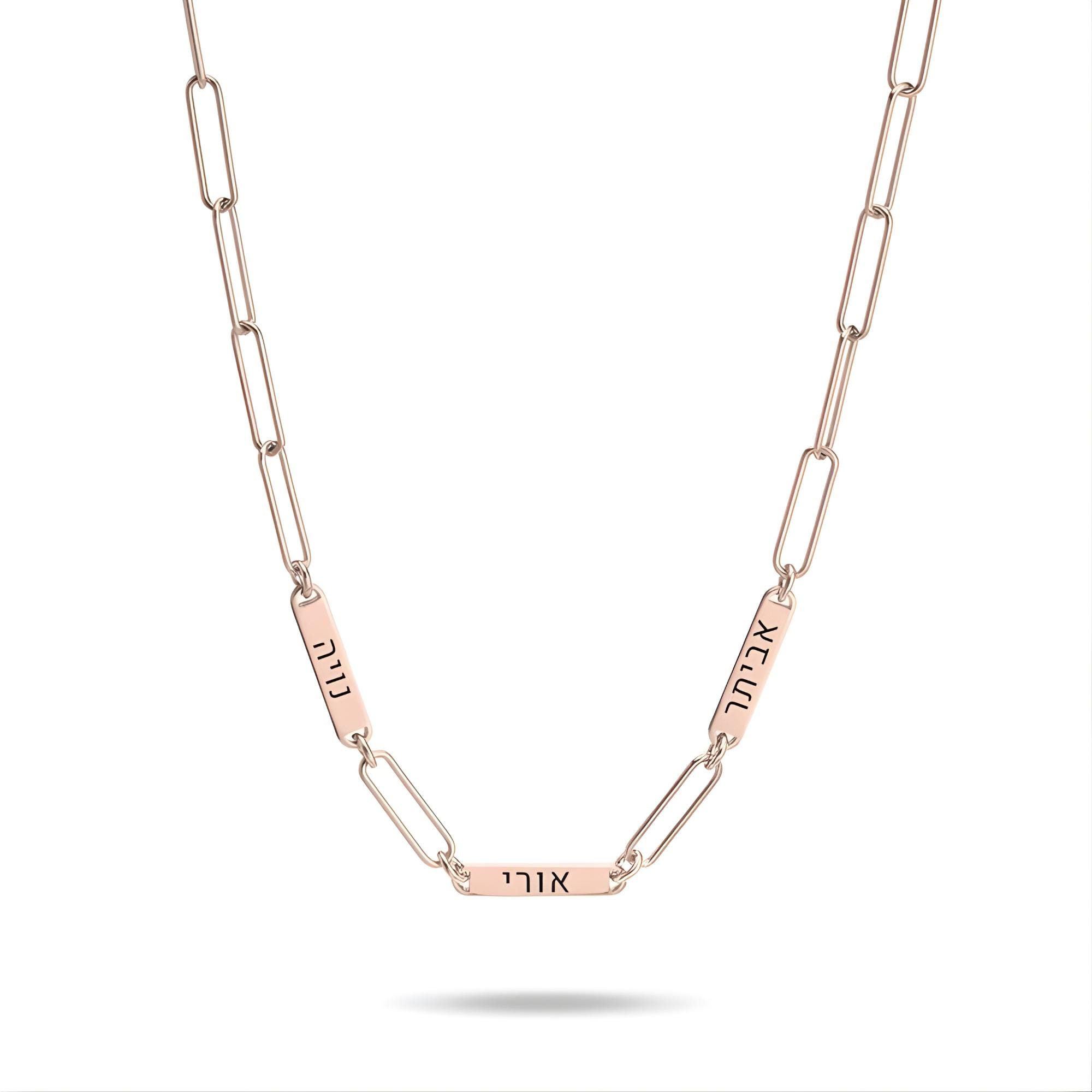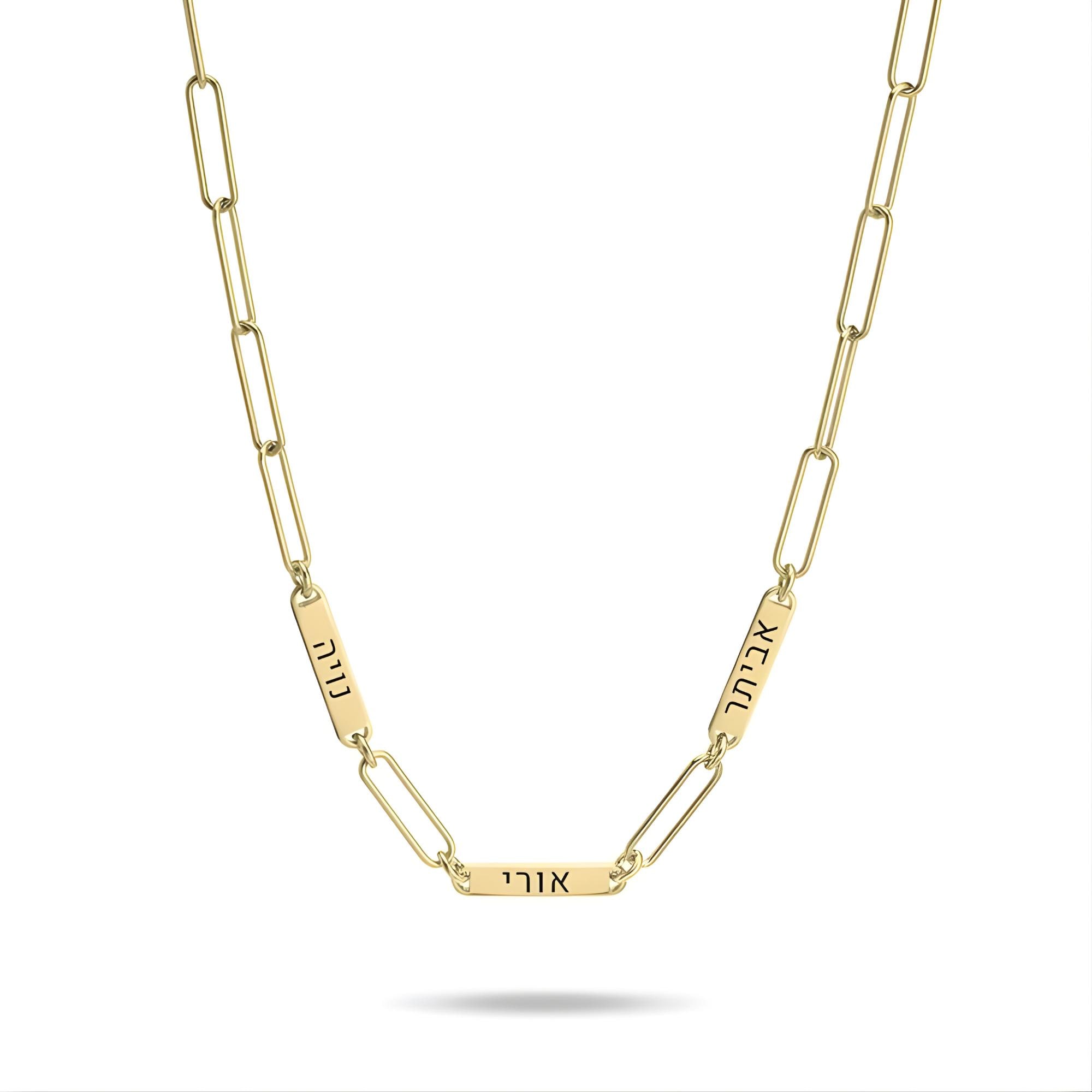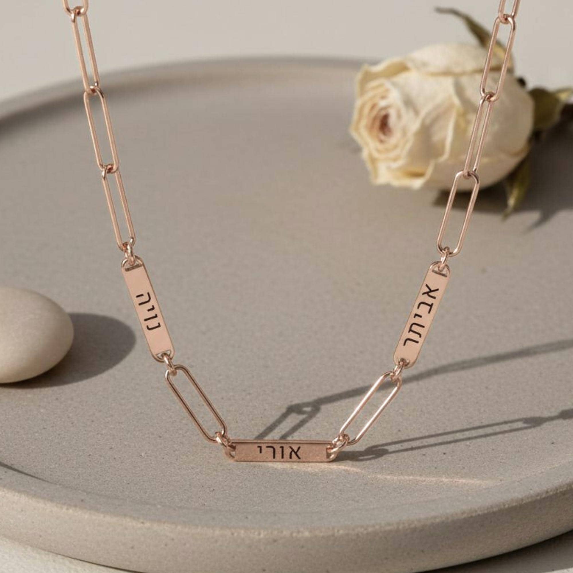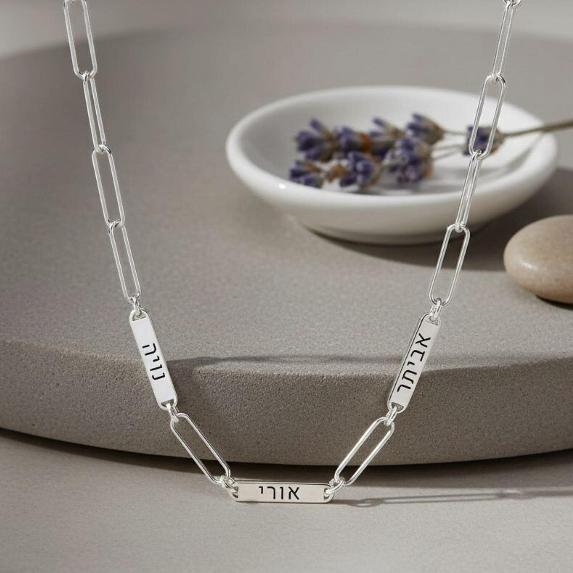 • Style: Multiple Hebrew Name Necklace – Paperclip Chain, Custom Engraved Kids Names