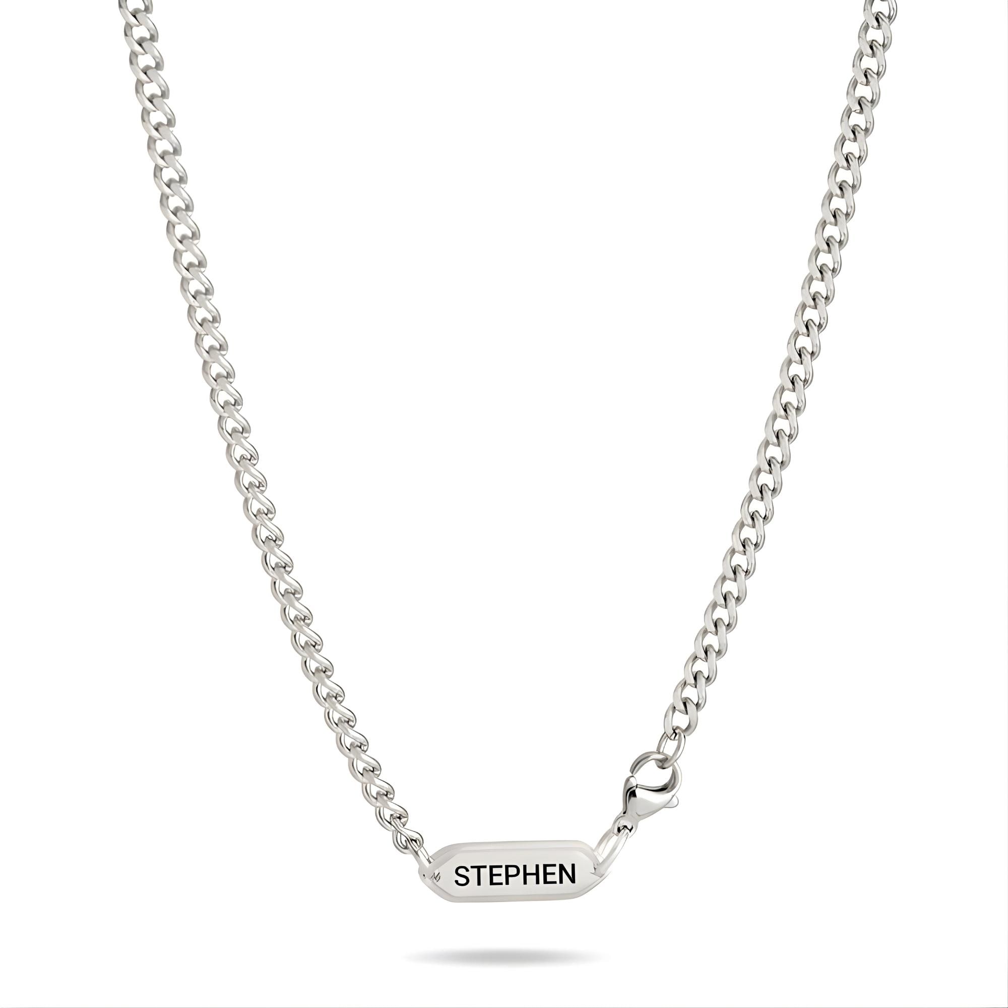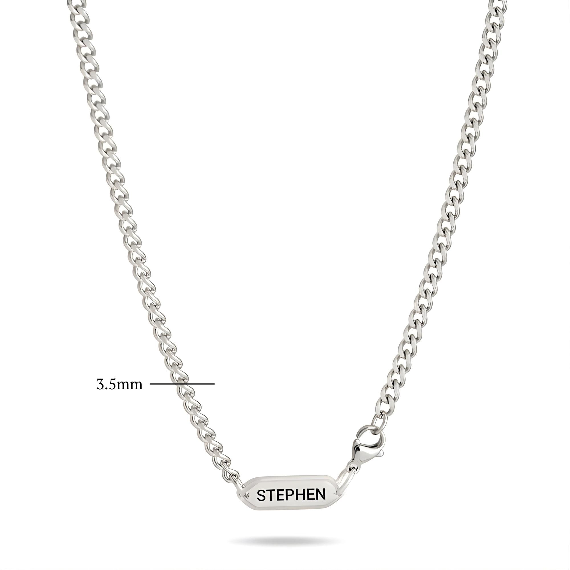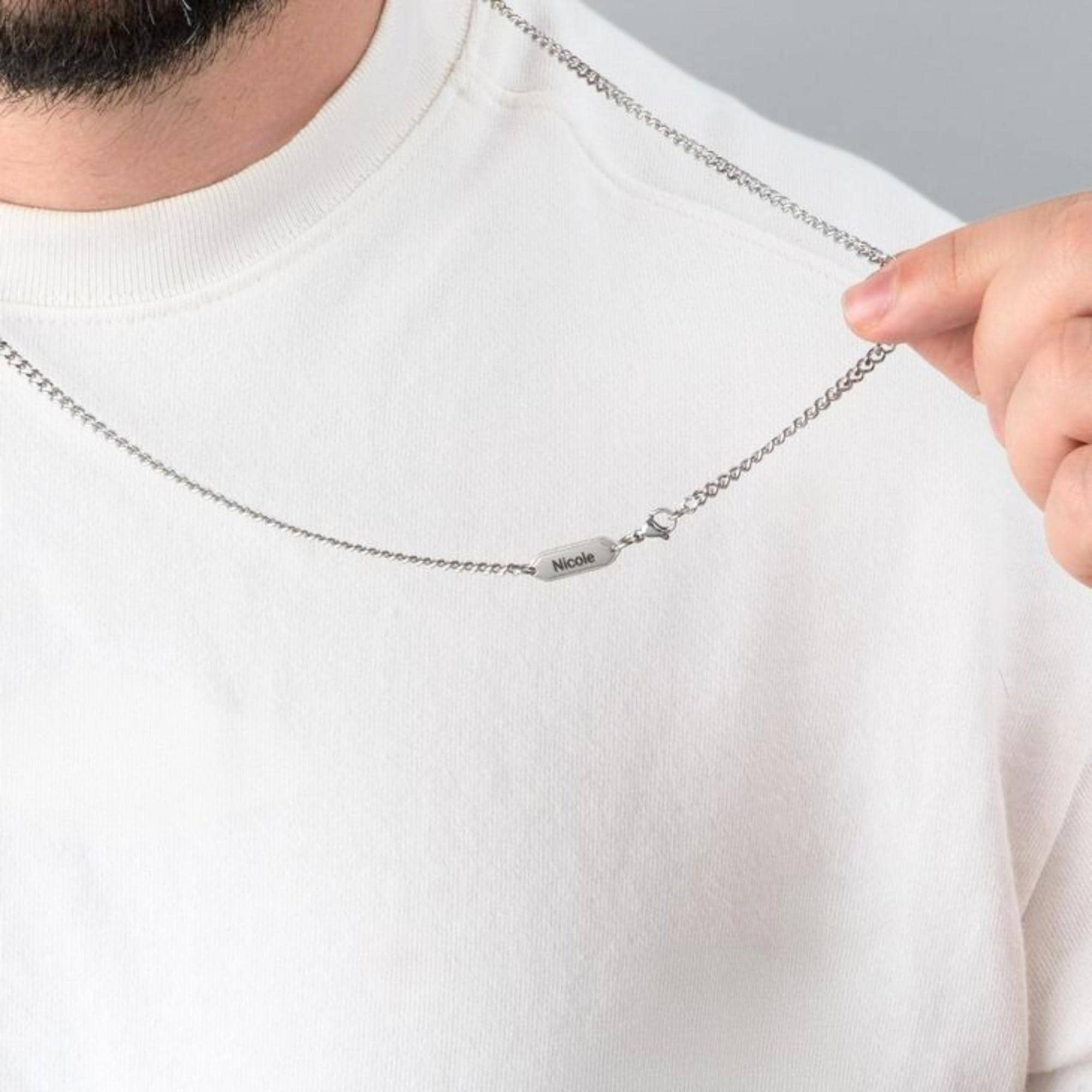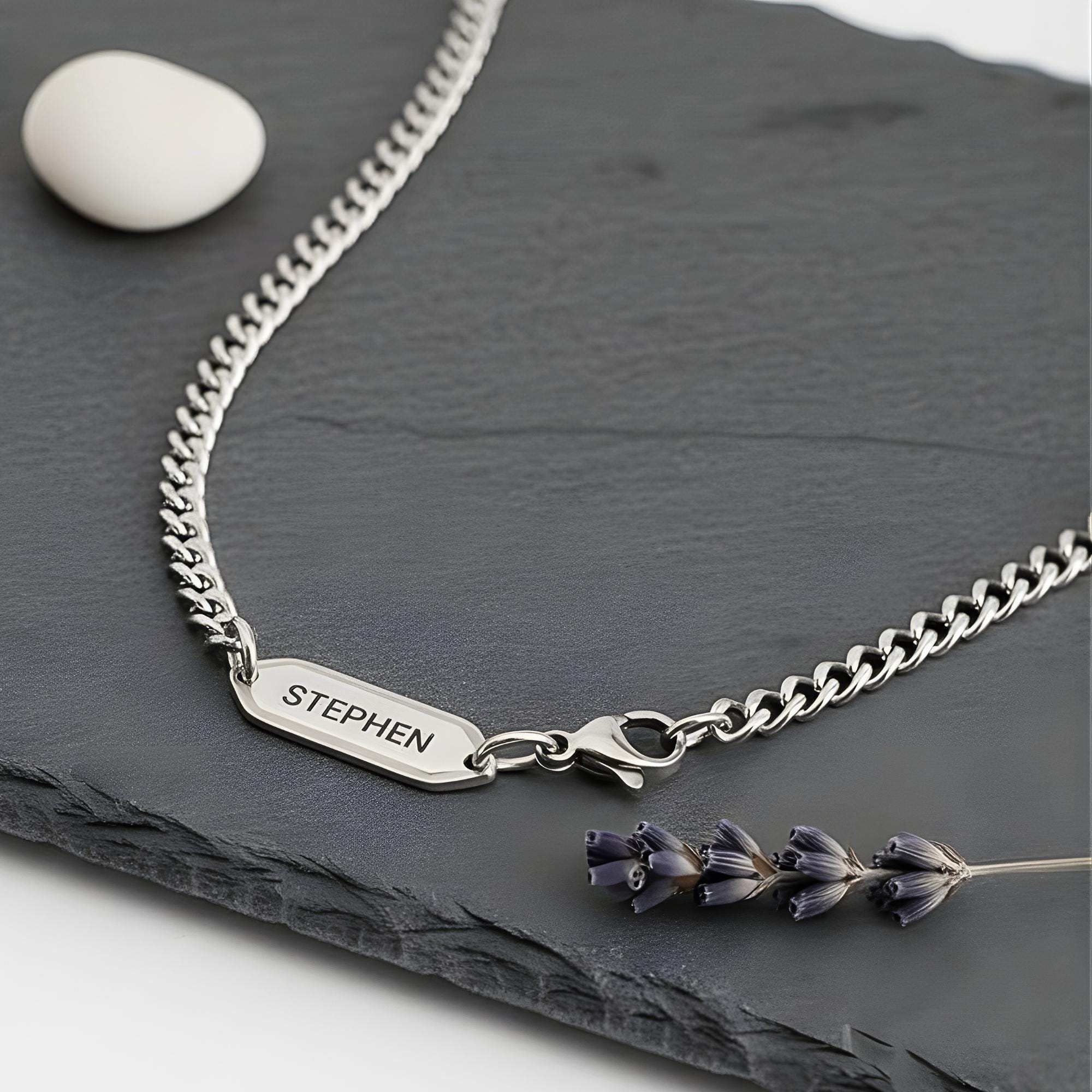 This personalized Cuban link tag necklace is made for men who like their style clean, strong and personal. Engraved with a name, date or meaningful word, it transforms a powerful chain into a piece that tells a story.